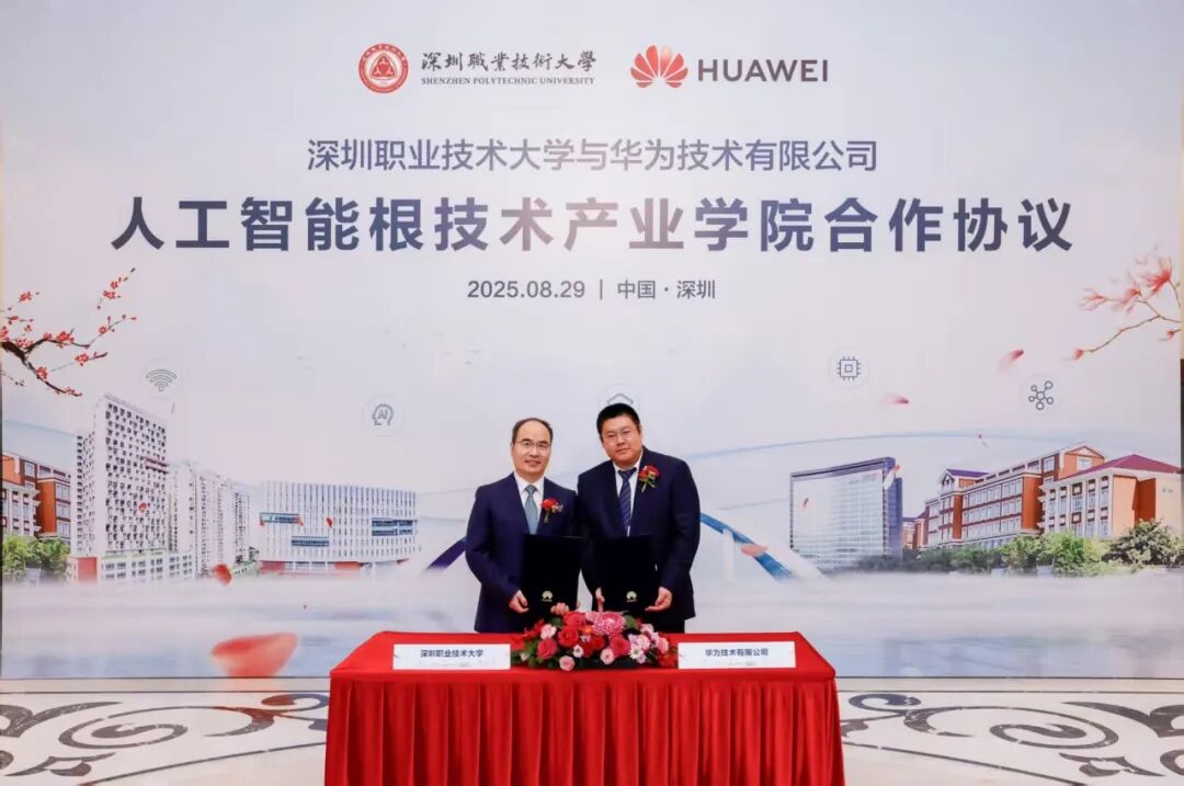 8月29日,深圳职业技术大学(以下简称“深职大”)与华为技术有限公司(以下简称“华为”)签订全面合作协议,深化人工智能人才培养领域合作,共建人工智能根技术产业学院(以下简称“产业学院”)。 产业学院将依托华为ICT自主创新技术(根技术),通过构建“体系、载体、社区”三位一体的产教融合新路径,共同制订与持续优化人才培养方案,助力深职大全面推进智算技术深度应用和高水平专业建设。
