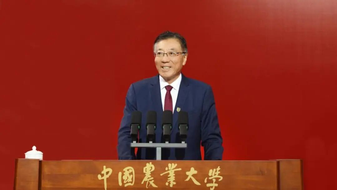 我关注到,同学们在后台拼出了“120”和“CAU”的背景,这是今年新生入学的一个特殊背景。你们是在中国农业大学即将迎来“双甲子”之际入校的一届新生,2025级新生规模也创下了农大120年办学历史之最,首次过万。刚才,本科生代表、研究生代表和杰出教师代表樊胜根教授都做了精彩发言。我注意到,本科生代表在致辞中用了一个词汇“守护”,研究生代表用了一个词汇“精神”,樊老师的致辞中有4个字——使命、责任。今天,面对1万多名新同学,我想借用本科生代表的“守护”,给全体新同学提出我作为校长,对这一届新生的期待和期望。今天,我的发言题目是“用心、用情、用力守护好你们的学业”。