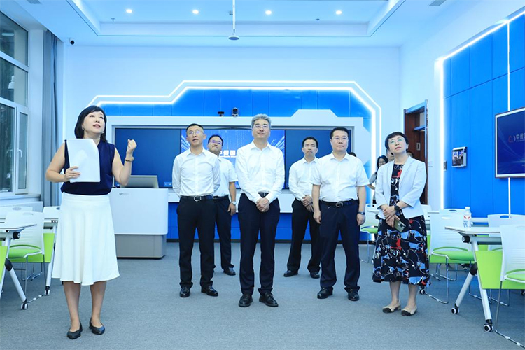在新质生产力大楼,吴岩实地调研了学校数字化办学推进情况及“人工智能+”新型教育模式的发展成效。吴岩走进中俄国际云课堂,观摩师生线上教学情况,并与莫斯科语言大学师生现场连线交流。吴岩还实地调研了学校智算中心,现场观摩DeepSeek-R1百亿参数大模型,并观看了“黑大龙眼”宣传视频以及AI数据分析技术演示,了解学校在数字化办学领域的技术支撑能力、创新实践路径与服务教育教学的综合成效。