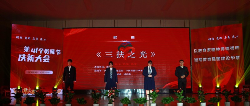 学校创始人杨成斌教授向庆祝大会发来贺信,向全校教职工致以节日的诚挚祝福。他表示学校创办以来的风风雨雨16年里,全体师生员工一起奋斗和成长,共同成就了今日万人本科大学的快速成长,老师们的辛勤付出,让这所大学有了生命和活力,每位老师都是学校的宝贵财富,都是学校的骄傲和自豪。他希望,全体教职工在未来的日子里,围绕学校高质量发展目标,继续携手共进,共同奋斗,让这所大学因为我们而更加辉煌!