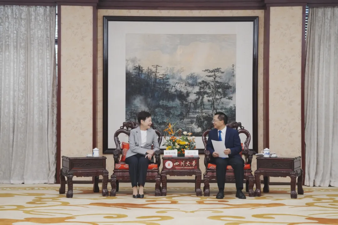 褚良银在望江校区明德楼会见了林郑月娥女士一行,对其来访表示热烈欢迎,并简要介绍学校发展近况。他表示,四川大学始终坚持开放办学,与香港多所高校在师生交流、联合培养和科研合作等方面建立了良好的合作关系。未来,学校将进一步对接国家战略与区域发展需求,持续深化川港两地的教育交流与合作。