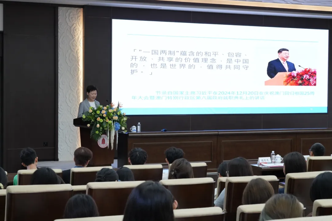 随后,林郑月娥女士为学校师生作题为《坚持和完善“一国两制”在香港的实践》的专题讲座,赵长生主持讲座。