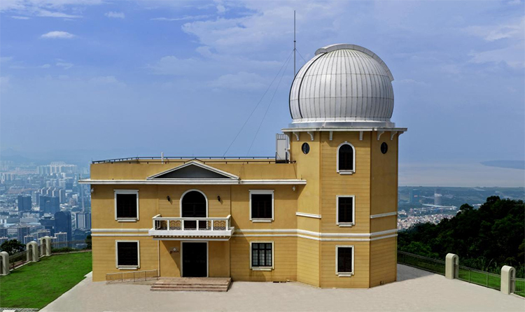 中山大学天文台建设于珠海校区大南山山顶,紧邻天琴计划激光测距台站。该台址拥有良好的天文观测条件,年可观测天数在120天,考虑到潜在的台风威胁,为减小圆顶的迎风面积,望远镜整体安放在随动圆顶内,圆顶在望远镜观测过程中随动,其运动速度最大为2°/s,满足太阳系内和太阳系外的观测目标随动观测要求,可抗12级台风。