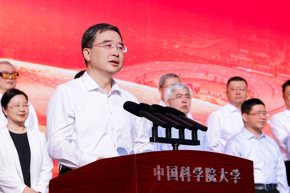 李奕在致辞中希望国科大人共锚“强国一代”的时代坐标,打造拔尖创新人才“首善摇篮”,攻坚关键核心技术“卡脖子”难题,打造教育科技人才产业一体化融合发展的“北京样板”。