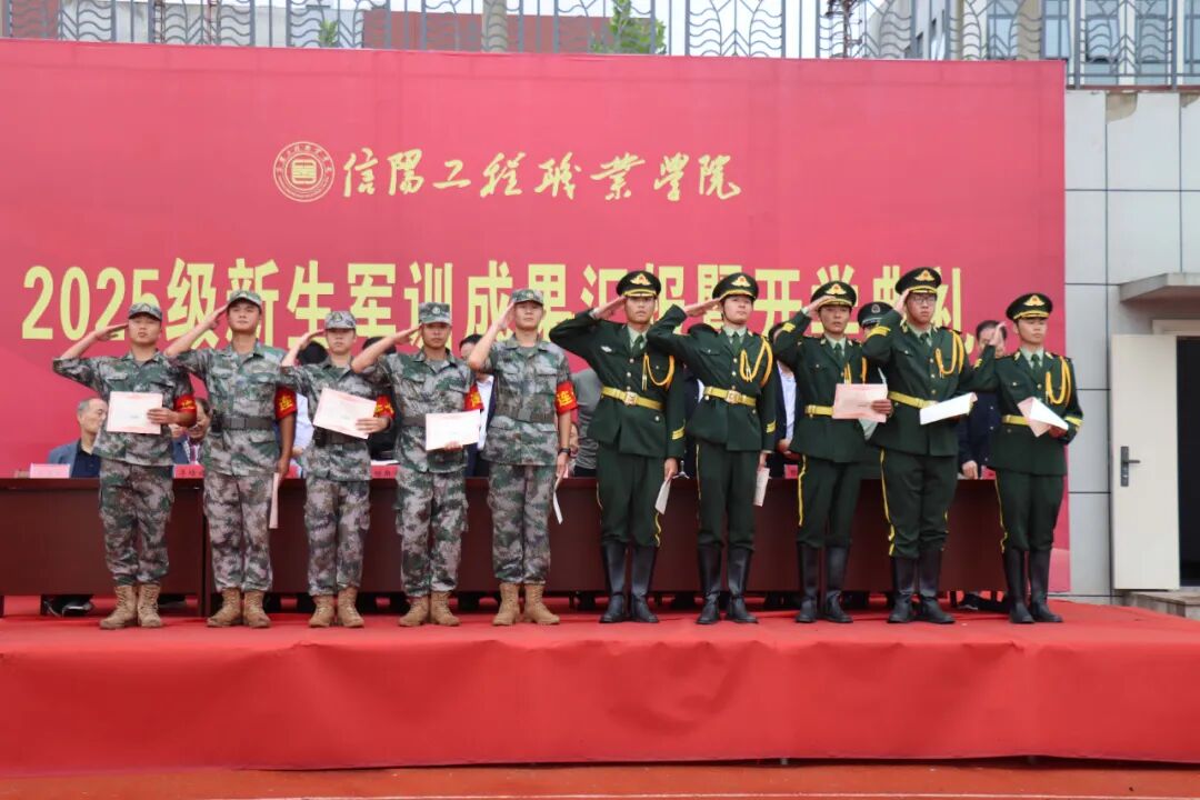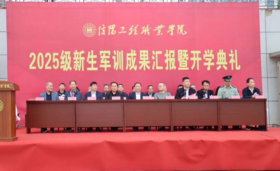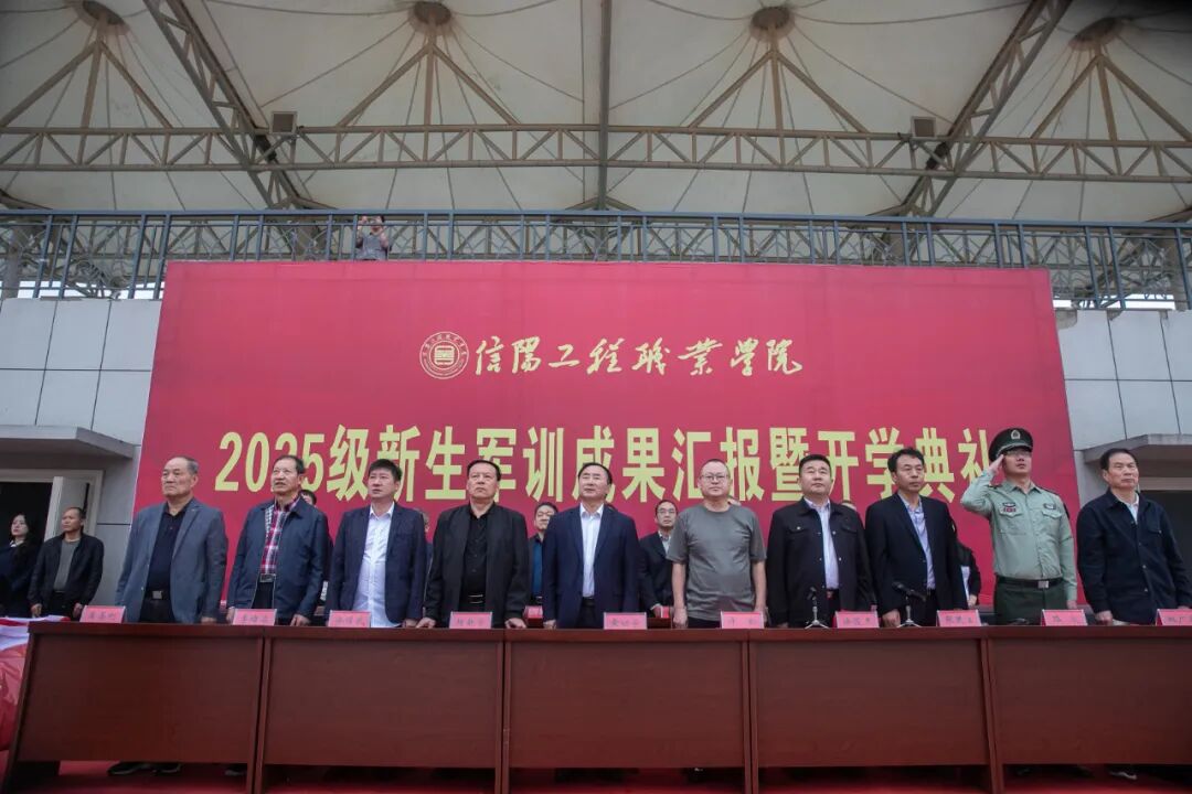 9月29日晨光初绽,信阳工程职业学院体育场已涌动青春热潮。彩旗舒展,军歌嘹亮,2025级新生军训成果汇报暨开学典礼在此盛大启幕。校领导黄功学、许松、杨新学、徐俊杰、张民生、徐耀武等来到现场,各处室及二级学院负责人、全体承训教官、辅导员与2025级新生共同见证这场青春盛典。典礼由工会主席、副校长徐俊杰主持。