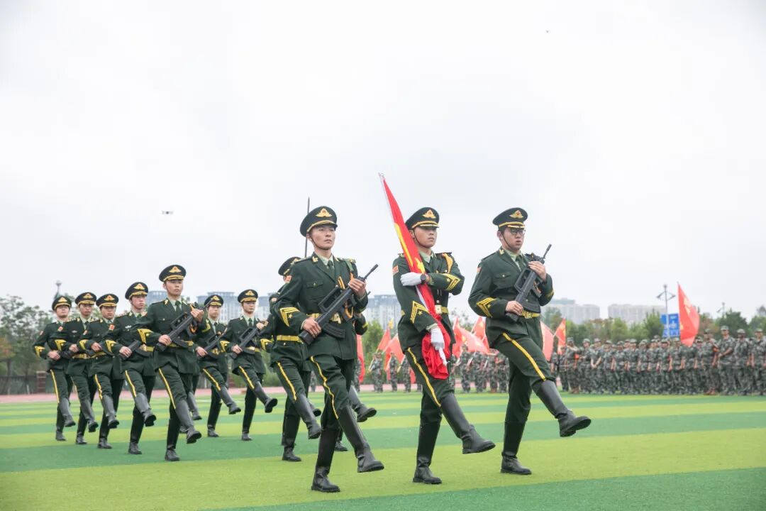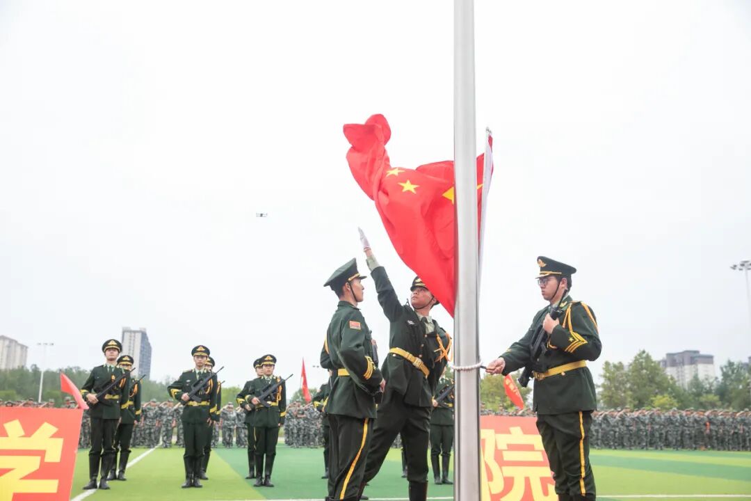 国歌奏响的瞬间,全场肃立,嘹亮歌声冲破云层。身着迷彩服的新生们身姿挺拔,目光如炬,稚嫩脸庞上写满坚毅,与天空下猎猎作响的国旗共同勾勒出一幅热血画卷。