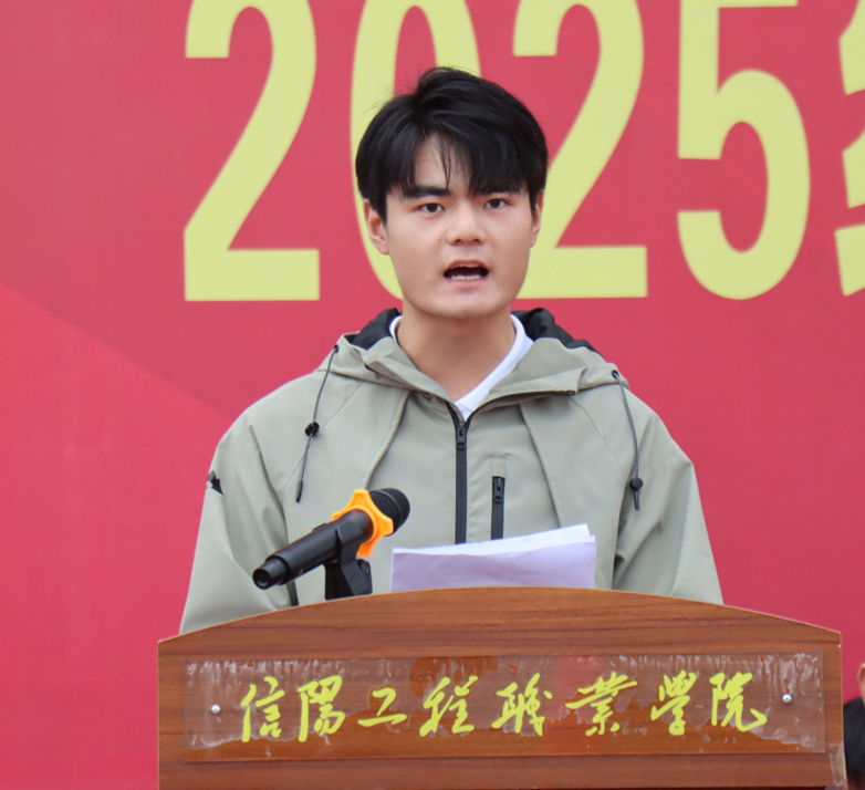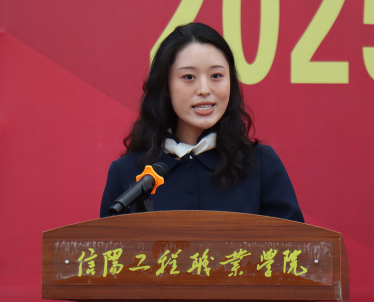 在代表发言环节,不同身份的讲述者带来多元视角。汽车工程学院2025级新能源1班朱林作为新生代表,分享军训中从“站不稳军姿”到“带队训练”的蜕变,眼中闪烁着对未来的憧憬;2025年国家奖学金候选人、机电与信息工程学院 2024级工业机器人8班郭思佳以“过来人”身份,结合竞选学生会主席、斩获省级技能竞赛一等奖的经历,向学弟学妹们倾囊相授成长秘诀;经济与艺术学院辅导员闫宇航深情承诺:我们愿做照亮你们前行道路的灯塔,与你们共赴星辰大海。