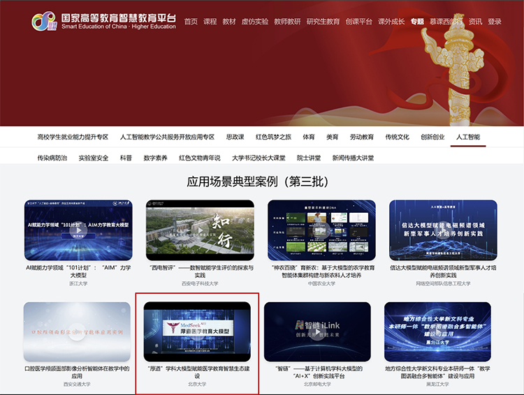 国家智慧教育平台上发布第三批“人工智能+高等教育”应用场景典型案例