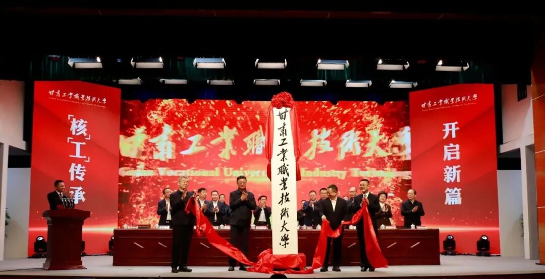10月16日,甘肃工业职业技术大学高质量发展大会暨揭牌仪式举行。市委主要领导与工业和信息化部教育与考试中心、教育部学校规划建设发展中心、省教育厅相关领导共同为甘肃工业职业技术大学揭牌。省委机构编制委员会、省委军民融合办、市政府主要领导及分管领导、省职教协会以及兄弟院校代表、合作企业代表等出席揭牌仪式。