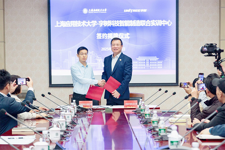 10月25日,上海应用技术大学和宇树科技股份有限公司签署人才培养战略合作协议,共同揭牌“智能制造联合实训中心”。此次校企战略合作正是积极响应以AI为代表的新一轮科技革命与产业变革的召唤,共同携手开启“试试改变教育世界”的生动实践。