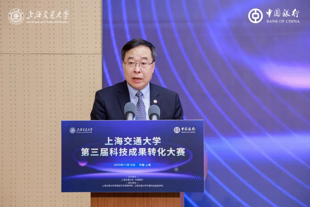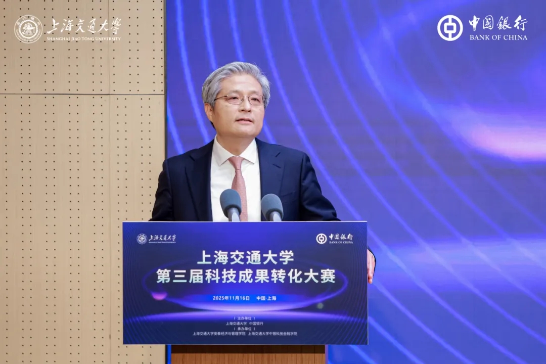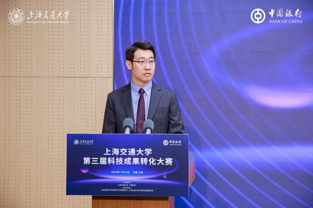 陈志能在致辞中代表中国银行上海市分行对本次活动的举办表示祝贺,并对上海交大及各界专家长期以来的信任与支持表达衷心感谢。他回顾了中行与交大紧密的合作历程,指出上海交大中银科技金融学院已成为汇聚“产、学、研、创、用”资源的重要平台。中国银行将持续以“投早、投小、投硬科技”为方向,为科技企业提供全生命周期金融服务,并通过大赛推动科技成果落地。