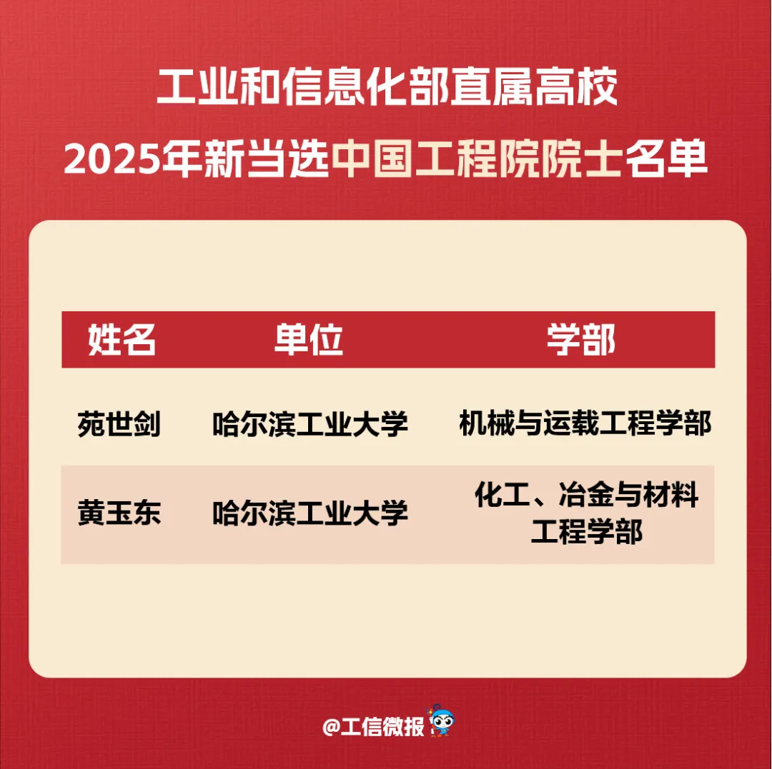 11月21日,中国科学院、中国工程院公布2025年院士增选结果,分别选举产生中国科学院院士73人、中国工程院院士71人。工业和信息化部直属高校共9人当选中国科学院、中国工程院院士,名单如下: