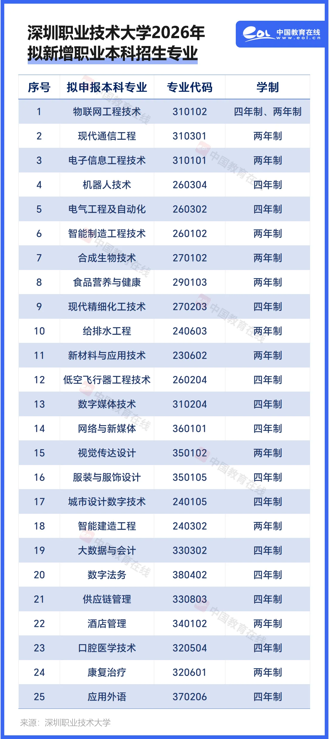近日,深圳职业技术大学发布《深圳职业技术大学关于2026年拟新增职业本科招生专业的公示》。