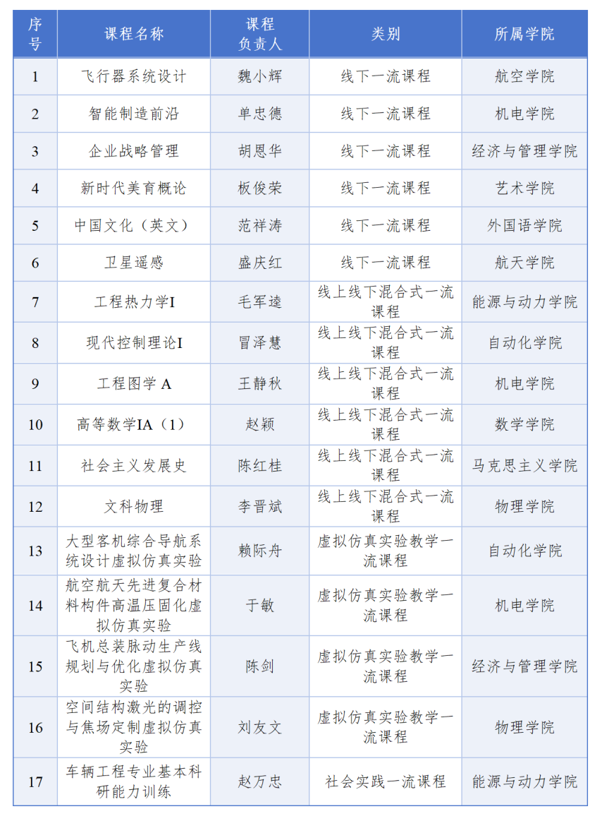南京航空航天大学17门课程入选第三批国家级一流本科课程