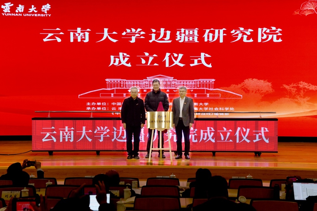 邢广程、周学斌、马文会共同为云南大学边疆研究院揭牌,这标志着该研究院正式成立并进入实质性运行阶段。