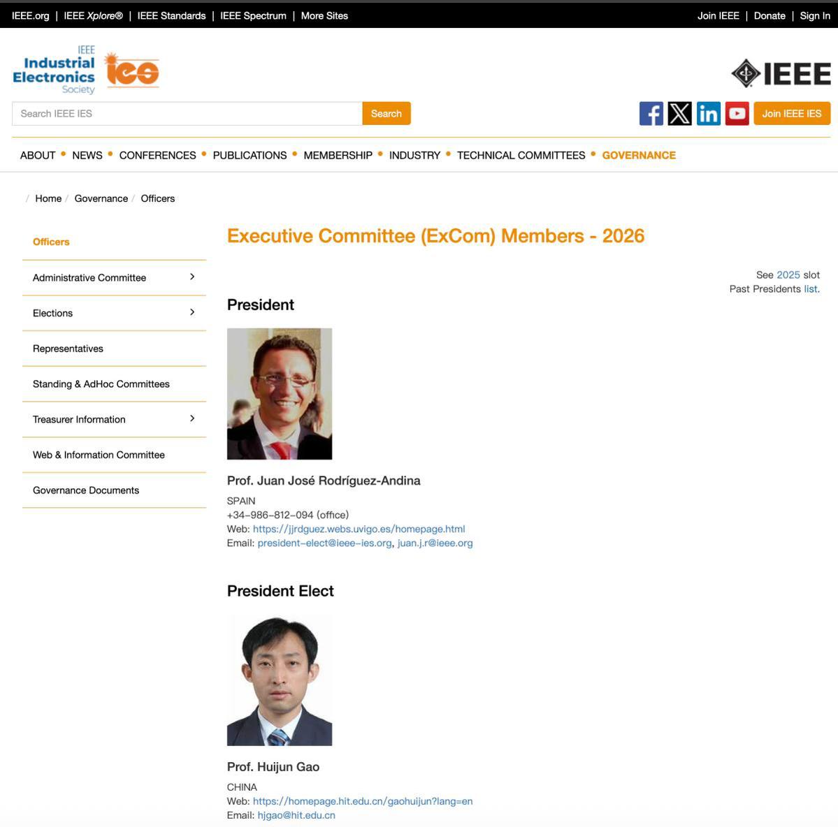 近日,美国电气与电子工程师协会(IEEE)工业电子学会在葡萄牙里斯本召开学会执行委员会议(ExCom Meeting)。哈尔滨工业大学航天学院高会军教授作为新当选的学会候任主席(President Elect)参加会议并作工作报告。他是该学会自1951年创会以来第一位当选主席的中国大陆学者。