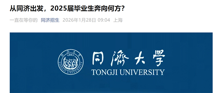 近日,同济招生微信号公布了同济大学2025届毕业生就业数据。