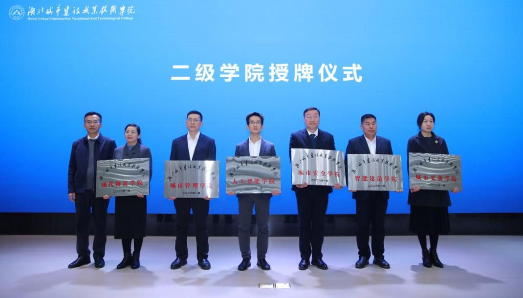 2026年2月5日上午,湖北城市建设职业技术学院举行二级学院授牌仪式暨 “聚焦新方位 共谋新发展” 交流活动,为全校六个二级学院集中授牌。这是湖北省首所对全体二级学院进行整体更名的高职院校,标志着学校在优化专业布局、对接产业需求、适配新时代职业教育发展上迈出关键一步。
