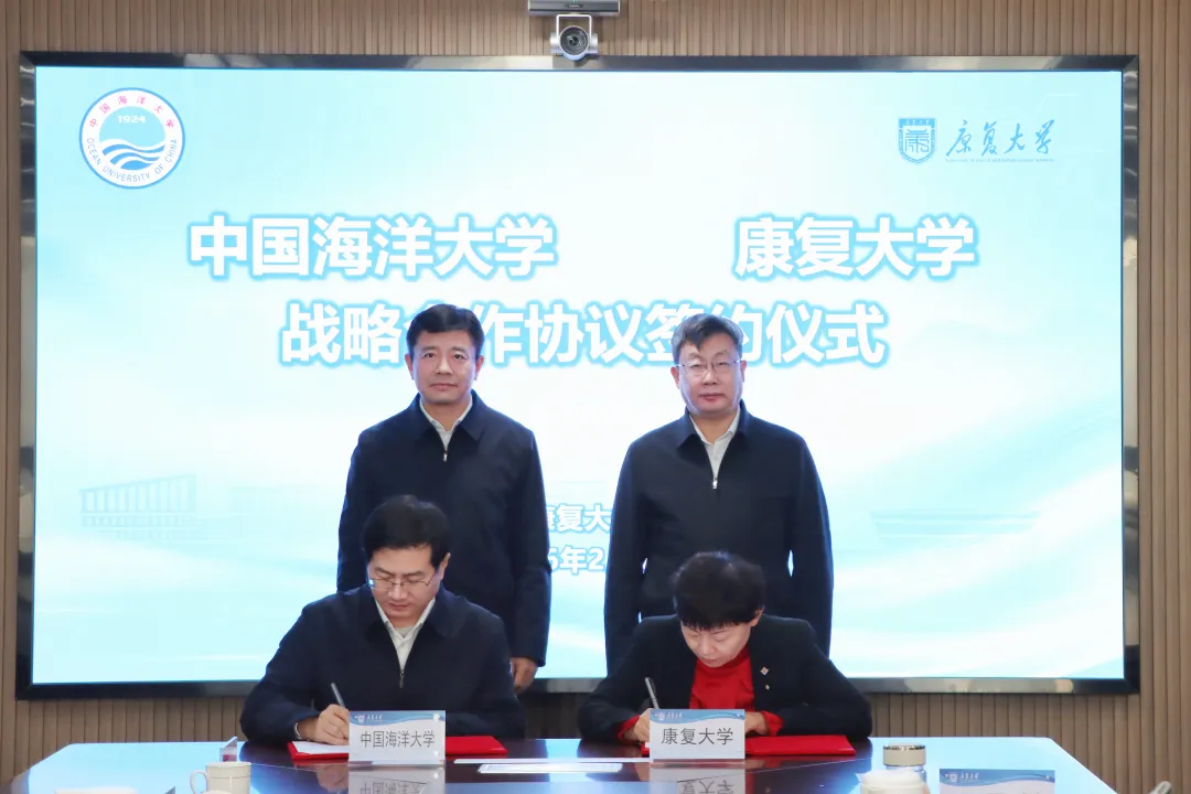 2月9日上午,中国海洋大学与康复大学战略合作协议签约仪式在康复大学举行。中国海洋大学党委书记李明、党委常务副书记张静、副校长王雪鹏出席仪式。中国工程院院士、康复大学校长董尔丹主持并致欢迎辞。党委书记刘军,分管日常工作的副校长姜宏,副校长毕建国、刘奇迹出席仪式。