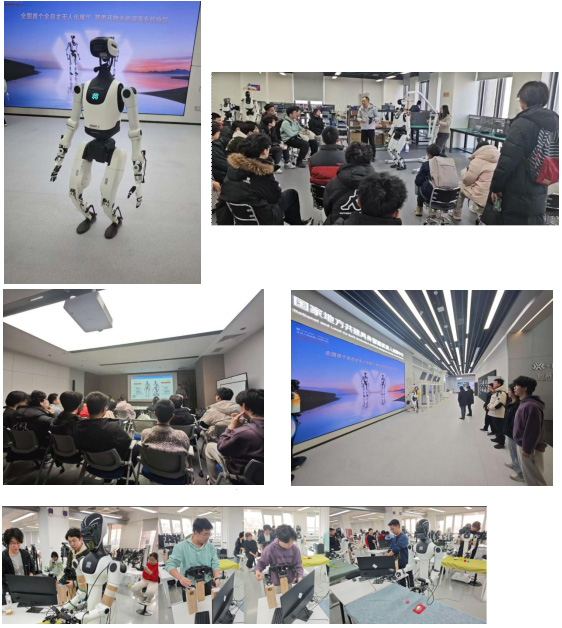 在为期2天的学习实践中,同学们零距离观察人形机器人、灵巧机械臂,系统、直观地了解加速进化T1和K1、天工系列、夸父系列等机器人平台技术,还现场操作机械臂并进行数据仿真模拟,亲身感受国产智能机器人的最新成果。这场跨学院的联合行动,不仅是课堂知识与产业前沿的深度对话,更是两院优势互补、协同育人的生动实践,为科创人才培养开辟了全新路径。