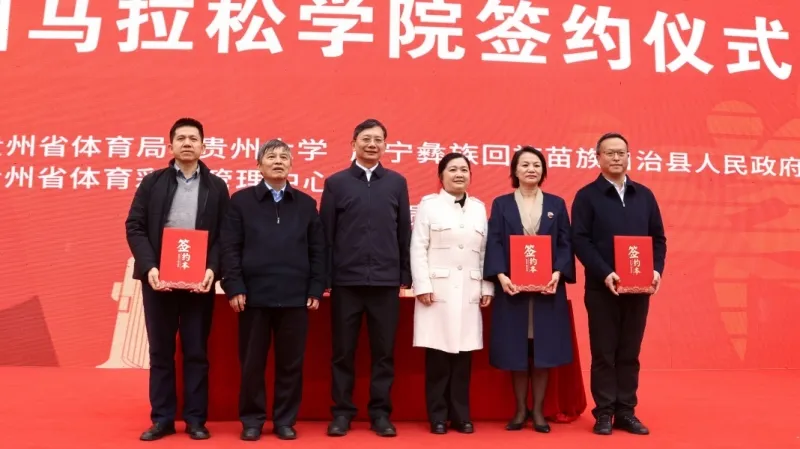 仪式上,三方代表共同签署了贵州马拉松学院框架协议,相关领导、专家和体育界代表一同为学院揭牌。