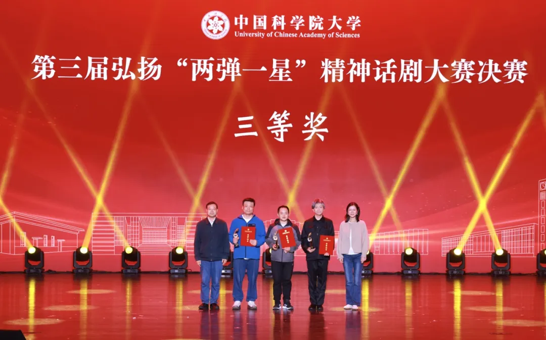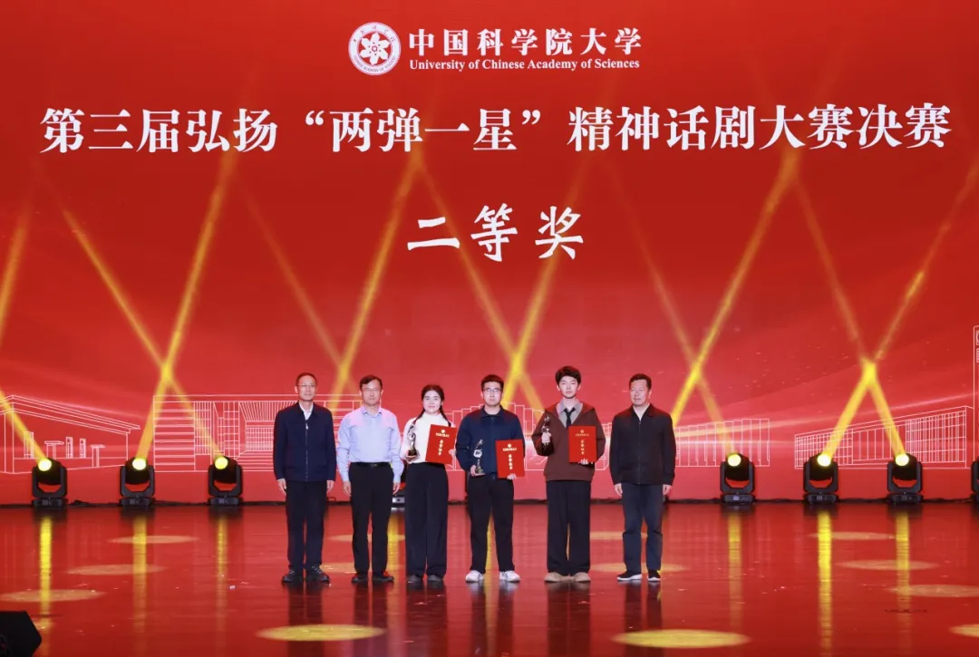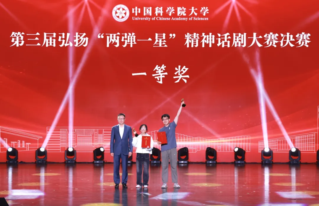 4月25日晚,中国科学院大学(以下简称国科大)第三届弘扬“两弹一星”精神话剧大赛决赛在雁栖湖校区隆重举办。国科大党委书记、校长周琪,“两弹一星”元勋陈芳允院士之子陈晓东及夫人陈金凤,“两弹一星”攻关科学家张存浩院士之子张捷,国科大外语系教授李佩侄子李躍出席活动。