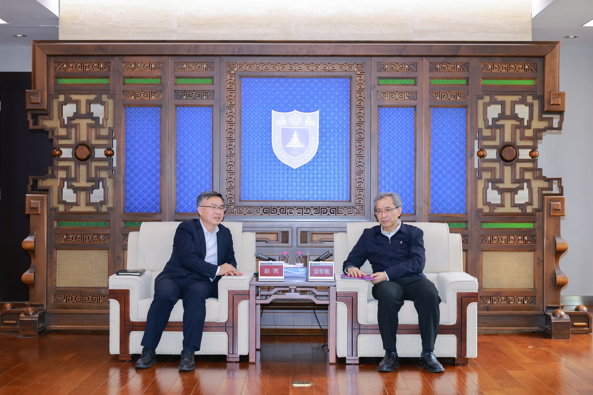 4月27日,中国社会科学院副院长、党组成员赵芮一行到南京大学调研。南京大学校长、中国科学院院士谈哲敏在仙林校区会见赵芮一行。