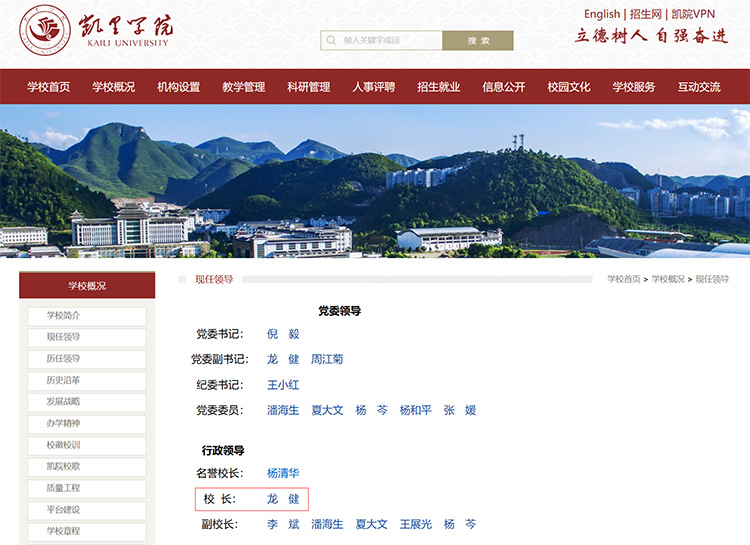 日前,凯里学院网站现任领导一栏已更新,龙健已任凯里学院党委副书记、院长。