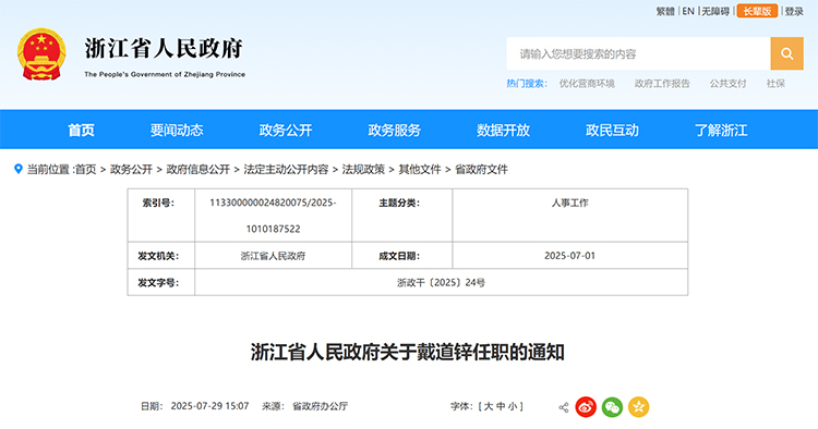 近日,浙江省人民政府网站发布任免通知,戴道锌任中国计量大学副校长。