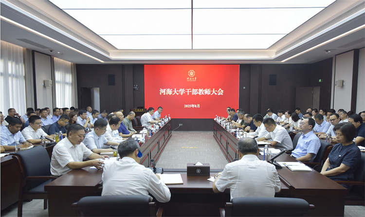 8月28日,河海大学召开干部教师大会。校领导、党委委员、纪委委员、全体中层正职干部参加会议。会议由校党委书记杨桂山主持。
