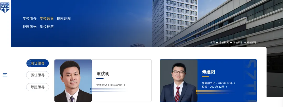 1月7日,深圳技术大学官网“现任领导”一栏显示,傅继阳自2025年12月起已任深圳技术大学党委副书记、校长。此前傅继阳是广州大学党委常委、副校长。