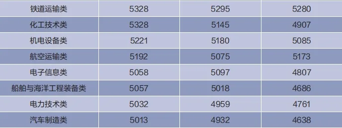 从毕业三年后的月收入来看,电子信息类、装备制造类、交通运输类月收入排前三位,均超过 7400 元。这表明,在一些技术密集型行业,具备专业技能的高职毕业生具有显著竞争力,其薪酬也具有不错的上升空间。