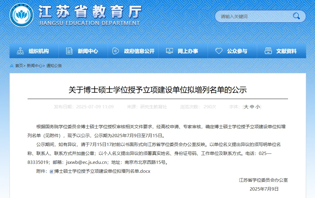 近日,江苏省教育厅发布《关于博士硕士学位授予立项建设单位拟增列名单的公示》。在这份公示中,格外引人瞩目的是包括1所本科层次职业学校——南京工业职业技术大学。