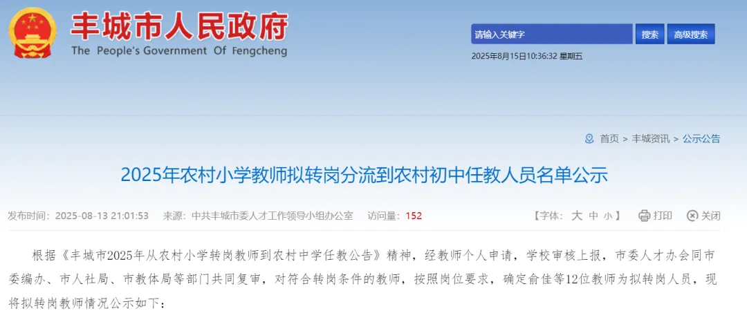 除永新县之外,江西省丰城市日前也发布公告,拟将12名农村小学教师转岗分流到农村初中任教。