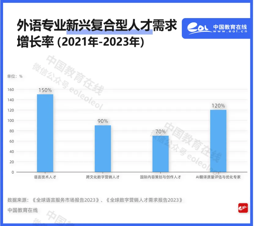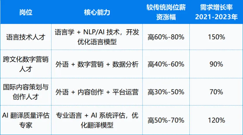 概括来看,以下四类代表性“外语+”复合型人才需求上升,且短期内难以被完全替代:
