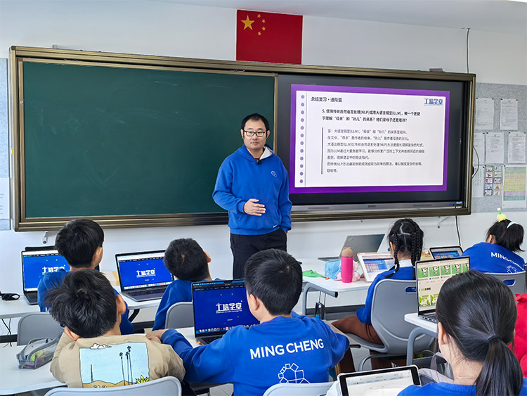 在明诚外国语学校的示范课活动中,课程围绕自然语言处理与语文学科的结合展开,数智人教学助手通过动态演示和趣味互动,激发了学生们的学习热情。北京明诚外国语学校校长池恒对课程的内容、教学方法以及学生的参与度给予高度评价:“这套方案不仅拓宽了学生的知识视野,也为学校推进智慧课堂提供了全新的教学思路”。