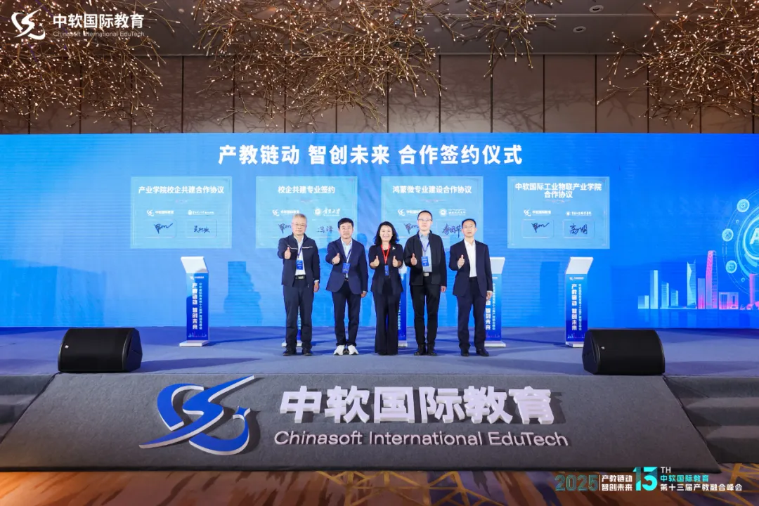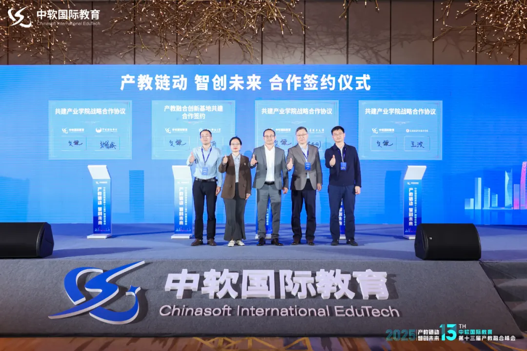 本次峰会通过政策解读、主题报告、案例分享、成果发布、展位体验、参访实践等形式,为人工智能时代背景下产教融合的深化发展提供了新思路与新动力。未来,中软国际教育科技集团将继续以客户为中心,以产业实践推动教育发展与科技创新为使命,携手行业生态伙伴,整合产业优质资源,通过构建“政产学研”深度融合平台,搭建资源以及服务能力体系,致力于推动教育新基建智能化升级和产教融合创新生态构建,为实现教育与产业协同高质量发展,服务国家战略需求积极贡献力量。