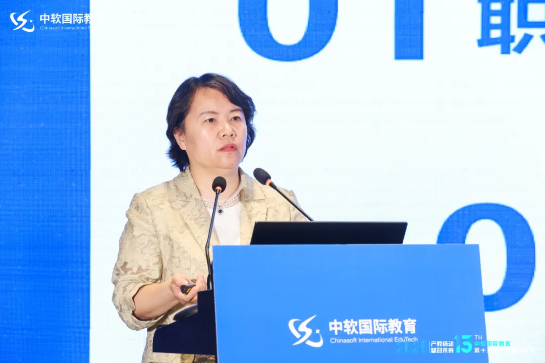 中软国际教育科技集团副总裁、卓越研究院院长王晓华围绕“‘产教科创大生态’创新实践”做了主题报告。她指出,“AI+X”时代已经到来,AI专业与行业双向奔赴。从企业视角看,“AI+X”人才培养要具备高效的算力资源、真实的行业问题、丰富的实践场景、多元的师资队伍、智慧的学习空间。她介绍,中软国际教育依托智云产教科创应用平台,打造“昇腾+大模型+工具+应用+服务”产教科创解决方案,提供“高性能、高效力”的算力资源,多场景”智慧学习空间。中软国际教育为“AI+行业场景”构建智慧实践条件和实践资源库,聚焦教育科研数字化,打造“产教科创大生态”。依托智云产教科创公共平台,从业务规划咨询,到解决方案设计,再到集成交付实施和持续运营服务,以及最终的标志成果培育,赋能院校人才培养、科研创新以及社会服务。