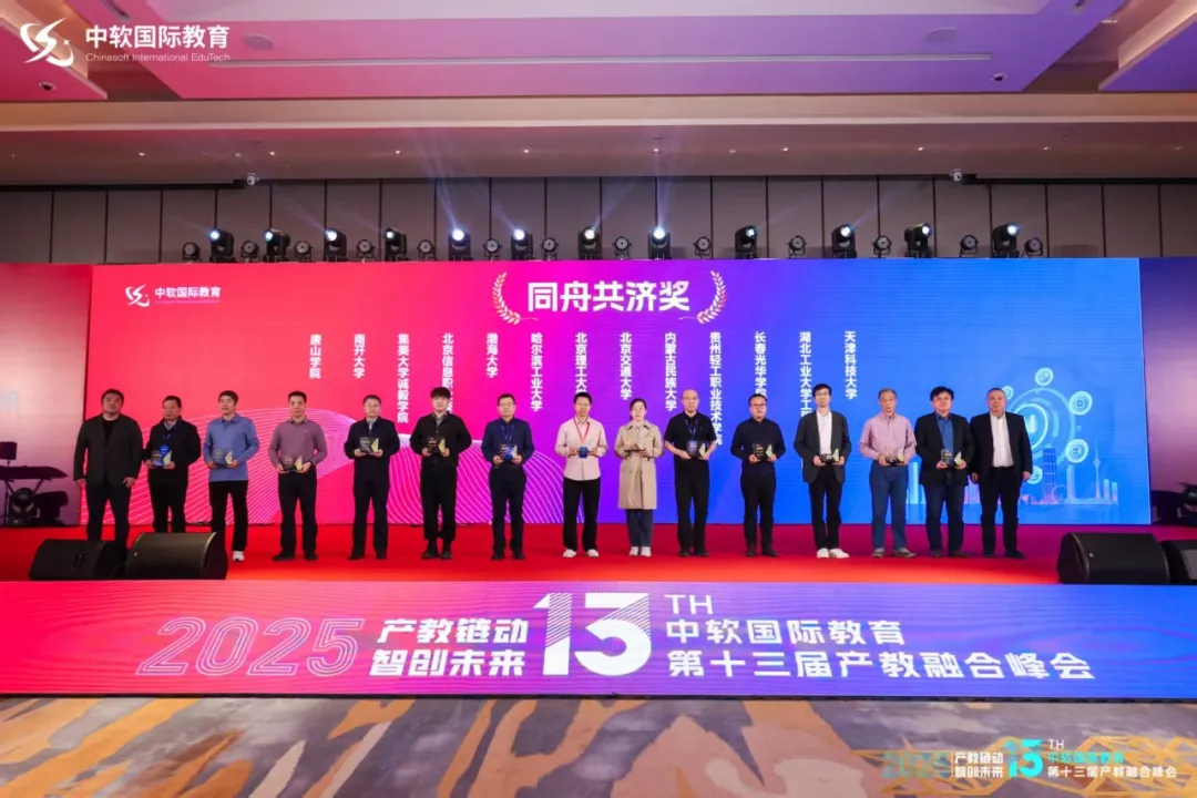 典礼现场,天津科技大学、湖北工业大学工程技术学院、长春光华学院、贵州轻工职业技术学院、内蒙古民族大学、北京交通大学、北京理工大学、哈尔滨工业大学、渤海大学、北京信息职业技术学院、集美大学诚毅学院、南开大学、唐山学院获评中软国际教育“同舟共济奖”。该奖项旨在感谢与中软国际教育深度开展产教融合超过10年的高校。校企双方在人才培养、成果转化等方面紧密协作、长期共赢,以创新模式突破行业难题,形成可复制的产教融合标杆案例,充分彰显“同舟共济、携手共赢”的合作精神。