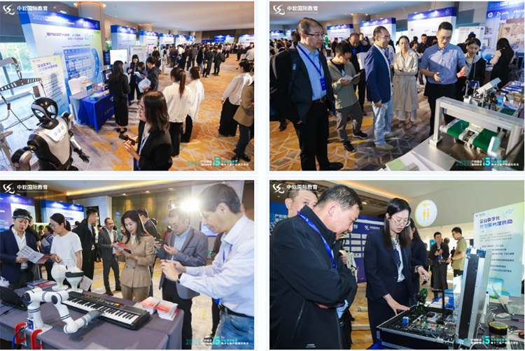 本次峰会期间,中软国际教育科技集团携手华为技术有限公司、江苏润开鸿数字科技有限公司、乐聚(深圳)机器人技术有限公司、美林数据技术股份有限公司、中国惠普有限公司、浙江强脑科技有限公司、理工比特林克(苏州)软件信息技术服务有限公司、天津云圣智能科技有限责任公司等企业在现场以沉浸式互动装置、实时数据大屏等形式,集中展示数智教育解决方案、产品与服务。前来咨询的院校领导、企业负责人络绎不绝,不少观众驻足于具身智能机器人、智能仿生手、集成电路、无人机等体验区,亲身感受 “人工智能+教育” 的无限魅力,惊叹于科技发展对各行各业的影响。热烈的互动氛围与积极的反馈,充分印证了产教融合成果的强大吸引力与价值。