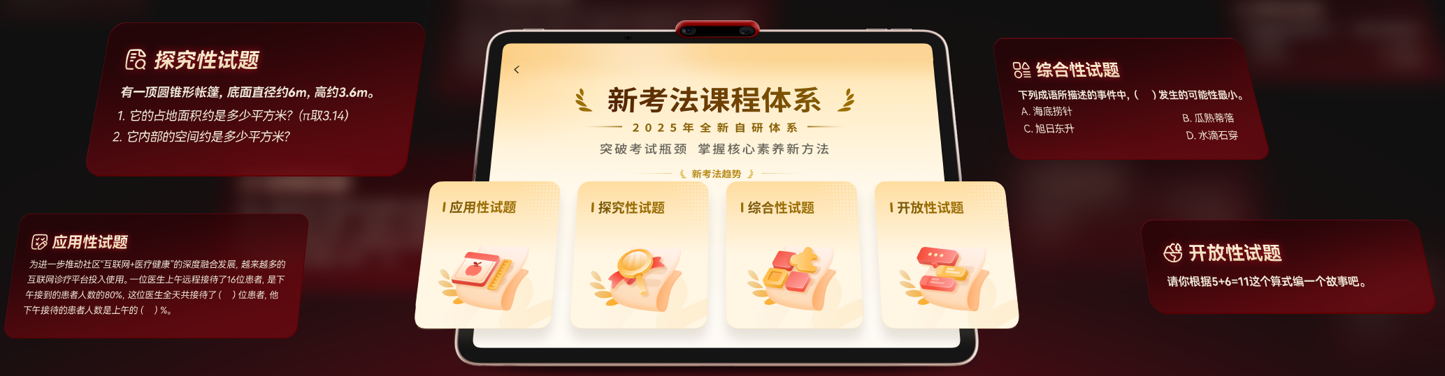面对新课标改革带来的教育变化,学而思凭借强大的教研实力快速响应,在保证与课内教材一级目录一致的基础上,进一步细化知识点讲解,率先推出“新课标衔接课”,为学生提供系统、全面的过渡指导,帮助学生顺利适应新课标的学习节奏。同时,“新题新考法”功能,聚焦新课标下背景信息更复杂的“应用性试题”、包含新知识的“探究性试题”、跨学科的“综合性试题”、答案不唯一的“开放性试题”四类新题型,通过专项训练,帮助学生掌握新题型的解题思路和方法。