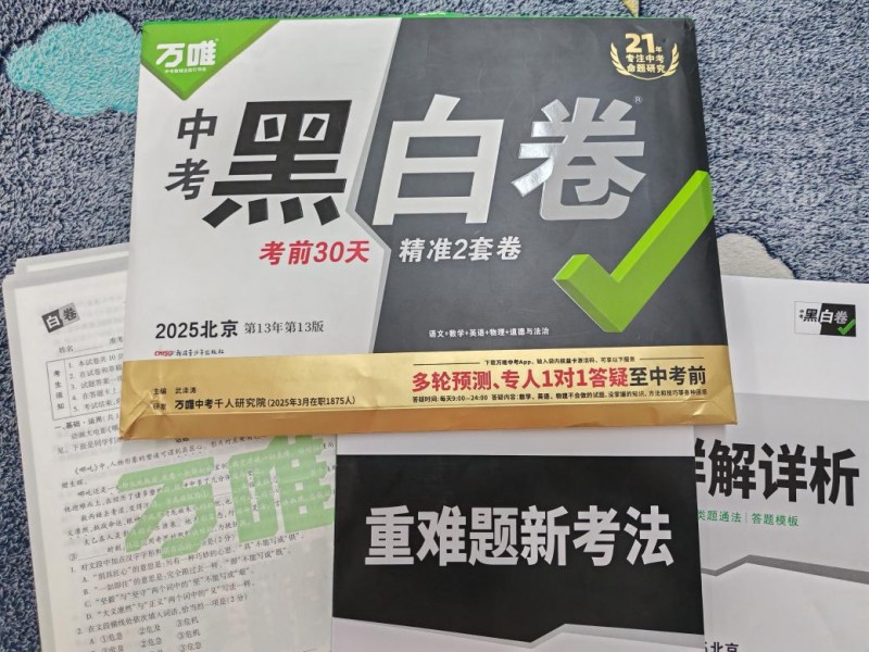 中考前,考生们面临着查漏补缺、多见新题、强化应试能力等关键需求。一套优质的教辅试卷不仅能帮助学生系统检测知识盲点,更能通过仿真试题训练提升实战能力。而万唯中考《黑白卷》以其卓越的品质,重新定义着“考前高质量试卷”的标准。