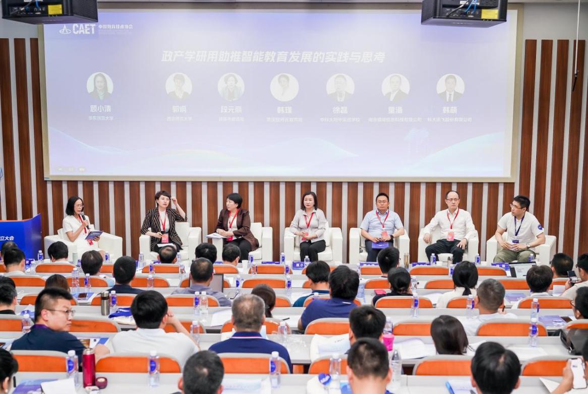 圆桌论坛环节围绕“政产学研用助推智能教育发展的实践与思考”主题,由华东师范大学教育信息技术学系教授顾小清教授主持,与西北师范大学教育技术学院院长郭炯教授,蚌埠市委教育工委委员、教育局副局长段元丽,中国科学技术大学基础教育集团中科大附中实验学校校长徐磊,武汉经开区教育局党委委员、神龙小学教育集团总校长韩瑾,南京极域信息科技有限公司总经理童涌,科大讯飞教育大模型产品总经理韩萌等共同对话。