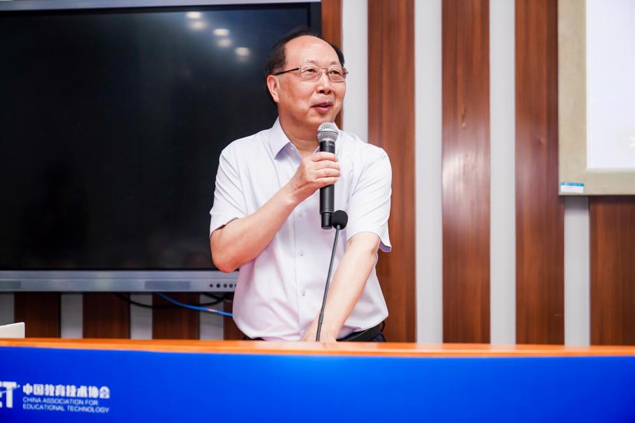 中国教育技术协会副会长黄先开教授作总结讲话,强调在智能技术发展的关键历史节点,中国教育技术协会智能教育专业委员会应运而生,承载着时代使命,肩负着智能教育发展的重任,意义深远而重大。最后,黄先开教授发布了“人工智能+教育”培训认证项目,呼吁大家携起手来,产教融合、校企协同,共同建设、共享资源、共赢发展。
