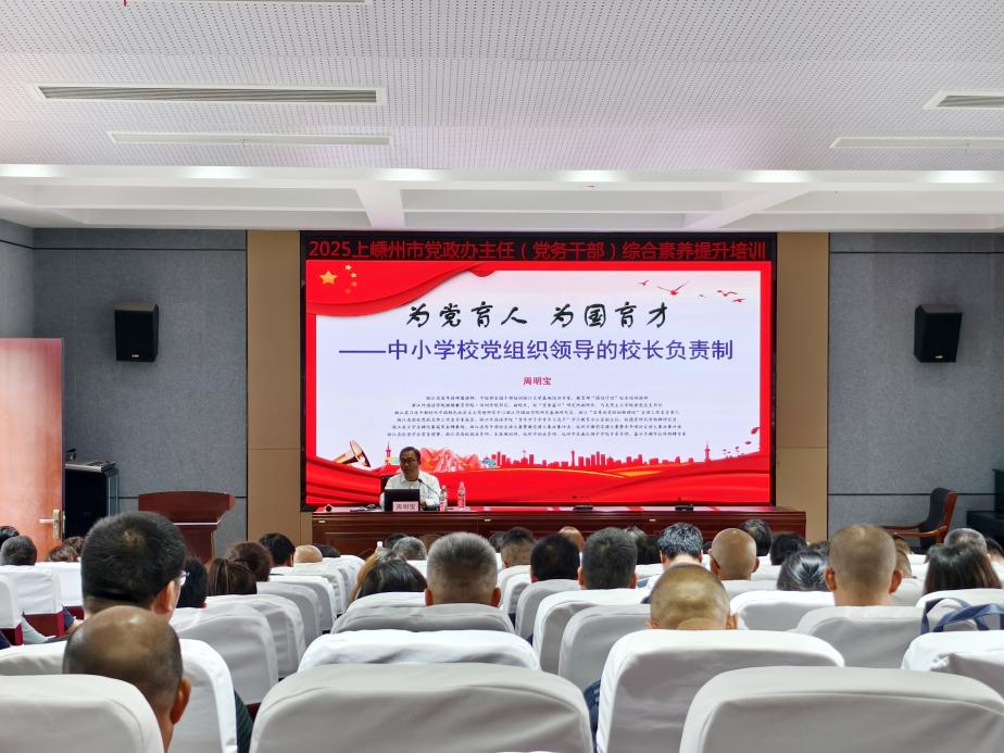 为深入贯彻落实党的教育方针,全面提升嵊州市党政办主任(党务干部)的综合素养,进一步加强党务干部队伍建设,2025 年5月28日至30日,为期三天的嵊州市 “培根铸魂,启智润心”嵊州市教体系统党政办主任(党务干部)综合素养提升培训在嵊州教师进修学校盛大举行。本次培训吸引了来自嵊州市教育系统的 100 位党政办主任(党务干部)积极参与,为推动党务工作高质量发展注入新的活力。