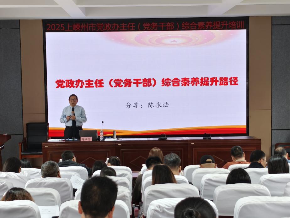 5 月 29 日上午,浙江省省级机关党校党务讲师团、浙江省机关党建研究会特邀研究院陈永法老师带来了《党政办主任(党务干部)综合素养提升路径》的讲座。陈老师在讲座中大量引用各类文件内容,逐字逐句进行精细解释对比,传授给参训教师学习文件的实用技能与技巧,引导大家如何从文件中汲取关键信息,提升政策领悟力和工作执行力。