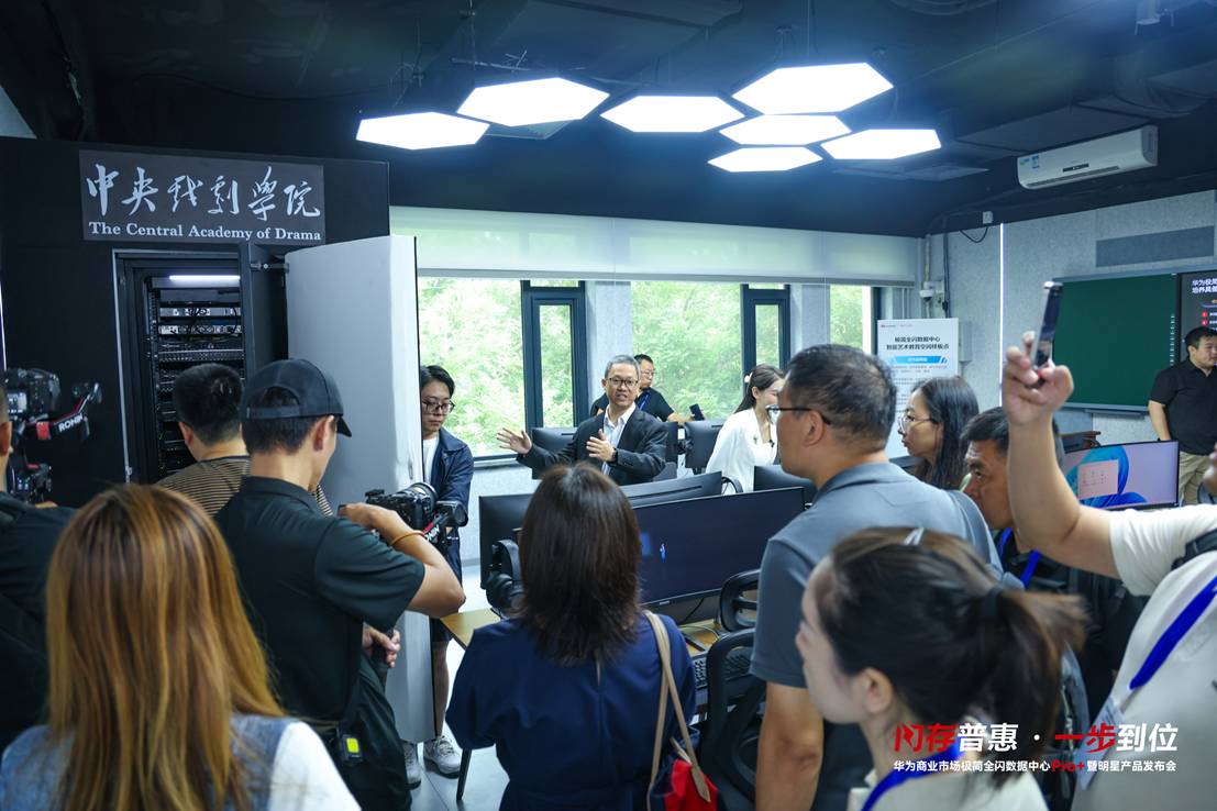 2025年6月30日,华为商业市场极简全闪数据中心Pro+暨明星产品发布会在北京隆重召开。本次发布会以“闪存普惠、一站购齐、极简易用、数智加速”为主题,重磅推出华为商业市场极简全闪数据中心Pro+解决方案,并正式揭幕中央戏剧学院“智能艺术教育空间”样板点,展示了华为在推动AI技术产业落地、助力行业数智化转型方面的持续突破与探索。本次发布会出席嘉宾有:中央戏剧学院院长、智能戏剧艺术空间教育部重点实验室主任郝戎,华为数据存储产品线副总裁袁远,中央戏剧学院院长助理陈雷,中央戏剧学院党委常委、党委宣传部部长张东宾,中央戏剧学院学术委员会副主任委员、数字戏剧系主任宋震,华为企业业务MKT副总裁郁赛华,华为中国政企数据存储解决方案销售部部长唐浩,华为中国政企商业MKT与解决方案销售部部长浦强,华为数据存储产业发展部部长戈前程,华为数据存储产品线营销运作部丁志彬等。