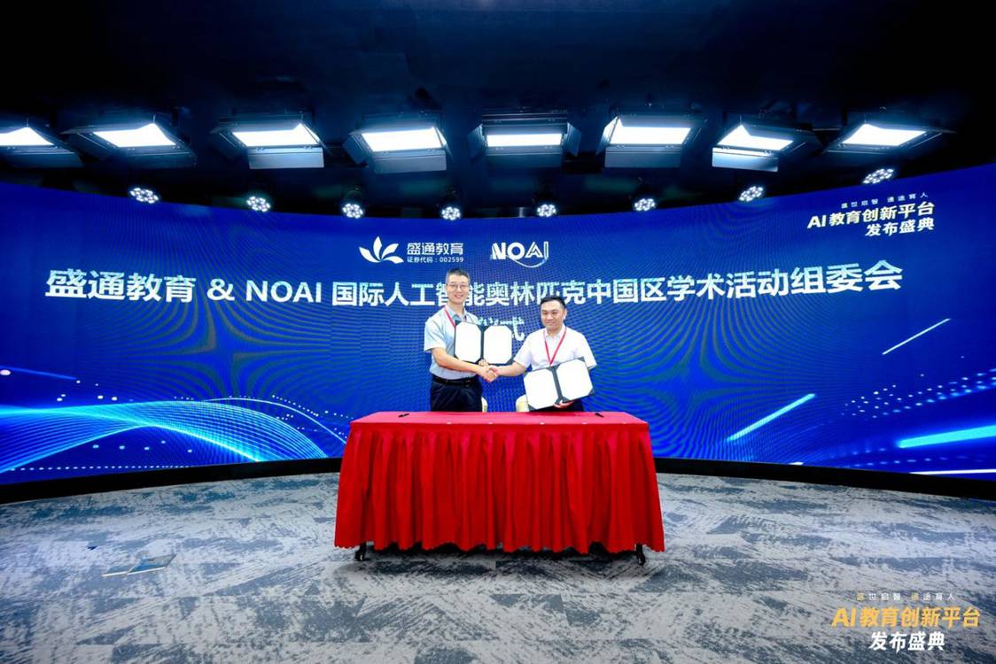 盛通股份董事长、盛通教育集团总裁贾春琳,中关村互联网教育创新中心主任杨丹,中国图学会计算机图学专委会和图学发展工作委员会委员罗霄,世界青年科学家联合会副秘书长王佳,世界机器人大赛秘书长李洋,中国科协青少年科技中心原副主任刘会强启动平台发布仪式。会上同时举行了盛通教育集团与NOAI国际人工智能奥林匹克中国区学术活动组委会的签约仪式。