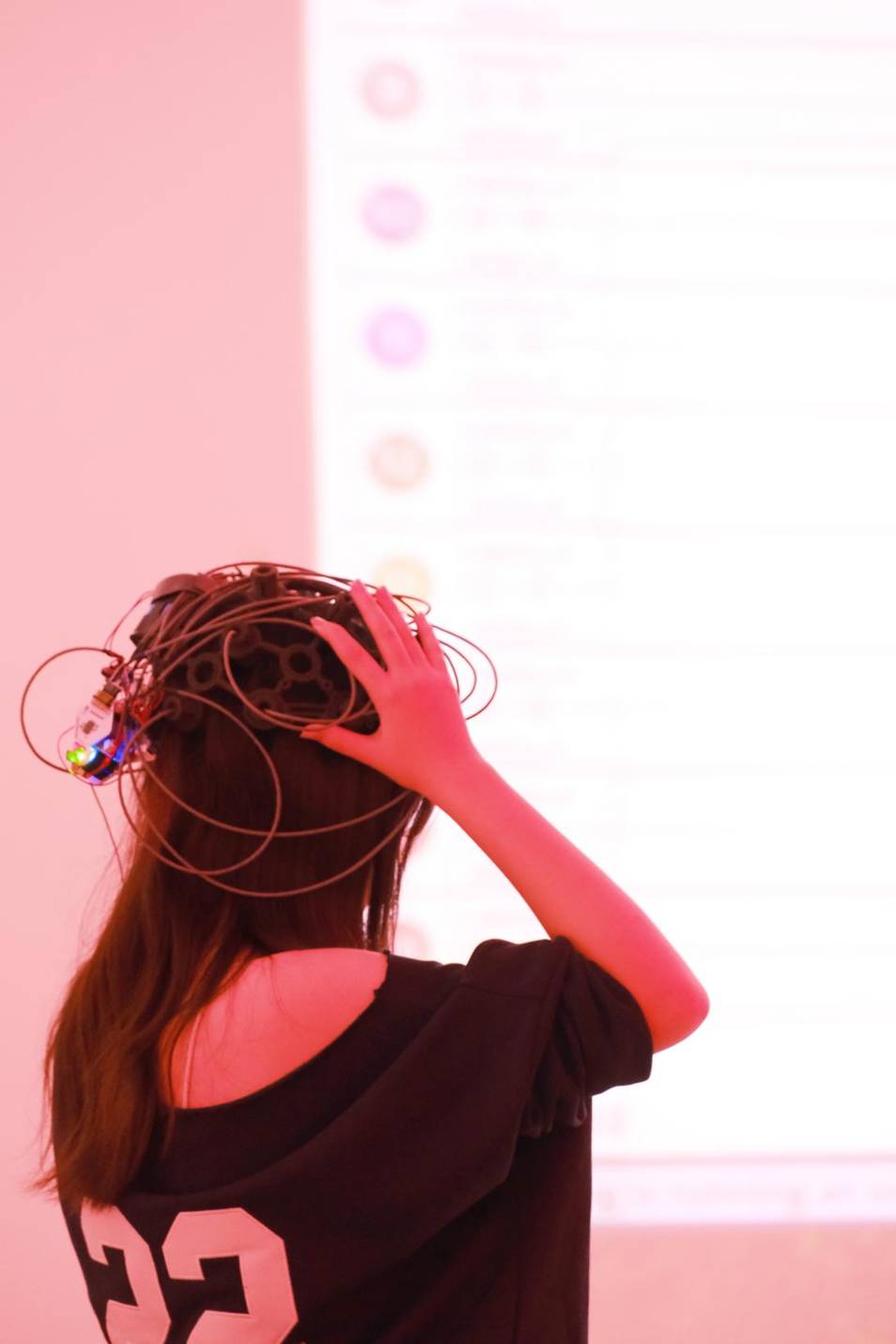 科礼斯表示,很多AI的研究来自于人脑。“在这个项目中,我们想用一种艺术的方法来可视化大脑和人工神经元网络的内部运作,但工具和艺术可视化是基于神经科学和计算机科学的见解。我们生成了实时数据处理工具来模拟大脑和人工智能电路的反应,实时记录了感官信号,然后使用这些电路信号来驱动大量的视觉效果。这次与学生们一起完成的作品让我们以视觉化的形式看到人脑和AI听到这些现场音乐后的反应。这可以理解为人和人工智能各自对音乐的理解和对话。”
