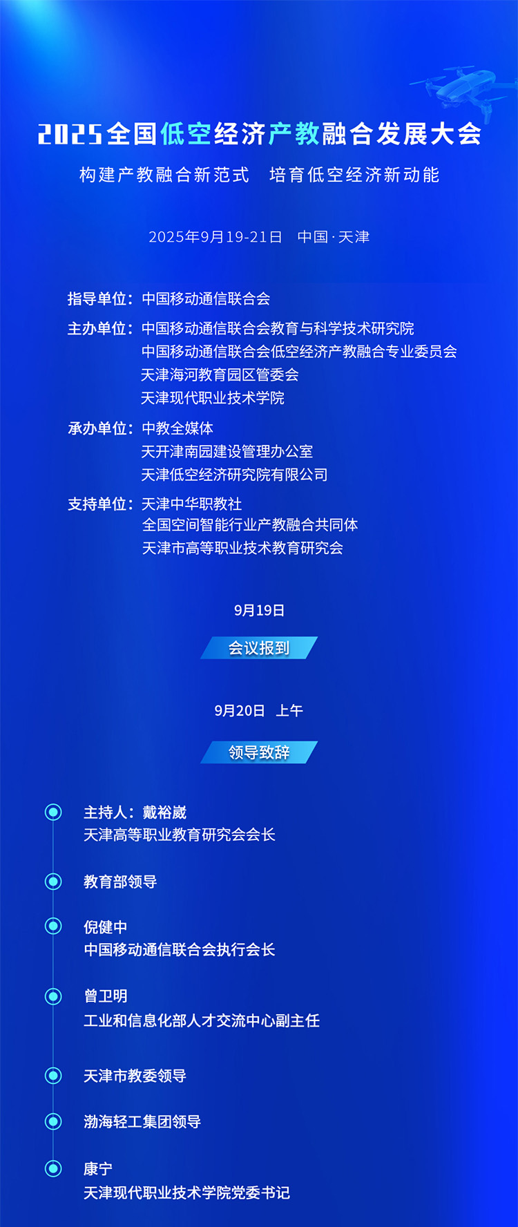 2025年9月19-21日,让我们相聚天津,共谋合作、共绘蓝图,携手谱写中国低空经济产教融合发展的新篇章!